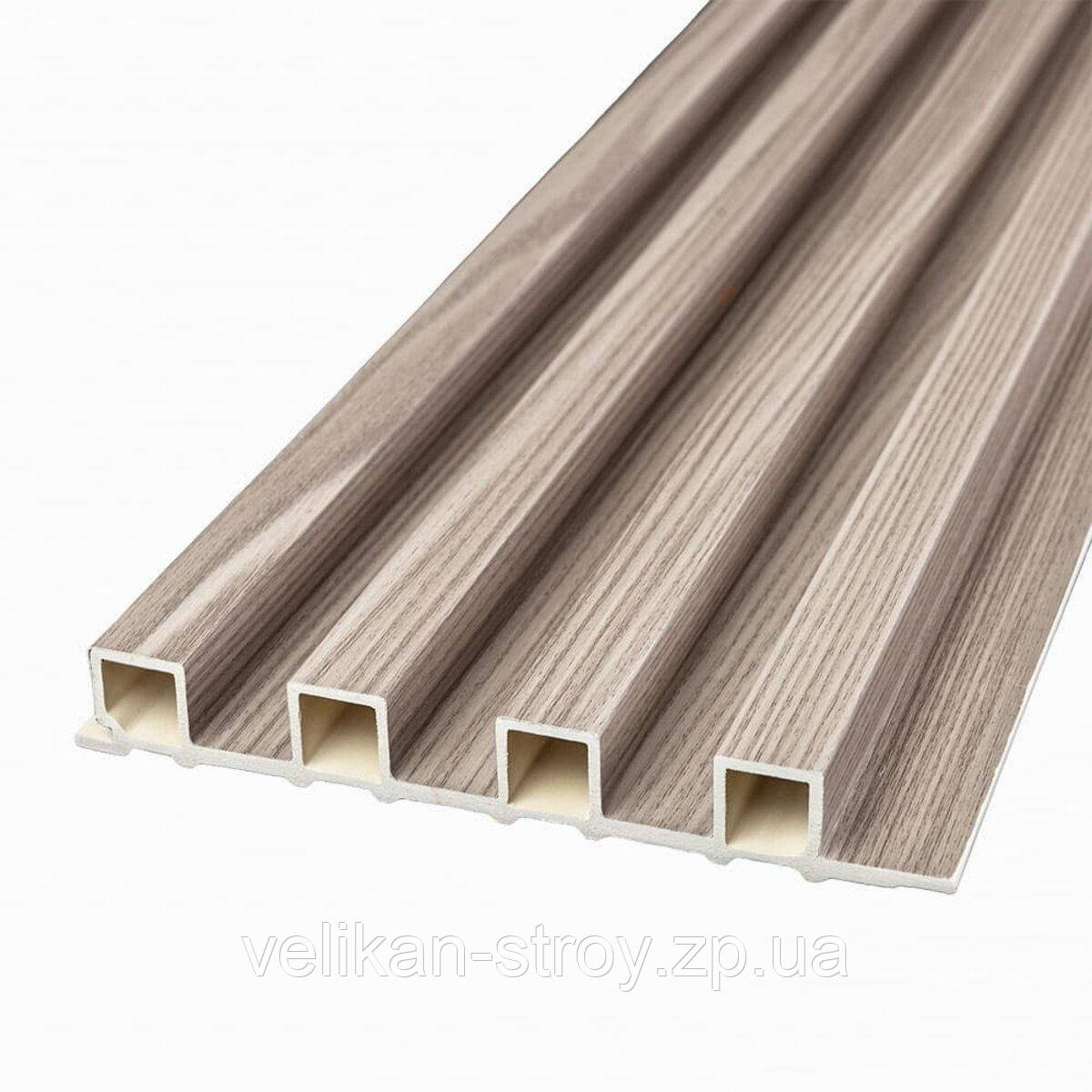 Опис: Стінові рейки WPC – будівельний матеріал для внутрішнього оздоблення, що імітує натуральну деревину.