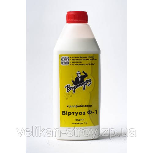 Гідрофобізатор Віртуоз Ф-1 використовується як водовідштовхувальний матеріал для захисту від води, солей, бруду, атмосферних опадів, сонячних променів (УФ) для фасадів із лицьового, клінкерного, силікатної цегли, плитки, граніту, каменю, мармуру, штукатурки, фарби, бетонних парканів, газобетону, виробів із гіпсу та бетону. Також ґрунтування і зміцнення мінеральних поверхонь. Перешкоджає проникненню вологи всередину будівельного матеріалу та виходу солей на його поверхню.Також може бути використаний для просочення та захисту деревини різних порід. (дуба, сосни та ін.)